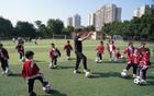 在后面的训练中,吴庆既没有安排传球、射门训练,也没有进行分组对抗,而是和小朋友一起玩球,同时对小朋友进行鼓励和指导。吴庆告诉记者:“幼儿足球最关键就是玩球,提升青少年对足球的兴趣。过早练专项技术会拔苗助长,所以今天我就是他们的‘大哥哥’,带他们一起玩球。”
