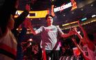 喜笑颜开范乔丹在球员通道开心表示拿下胜利启程赌城